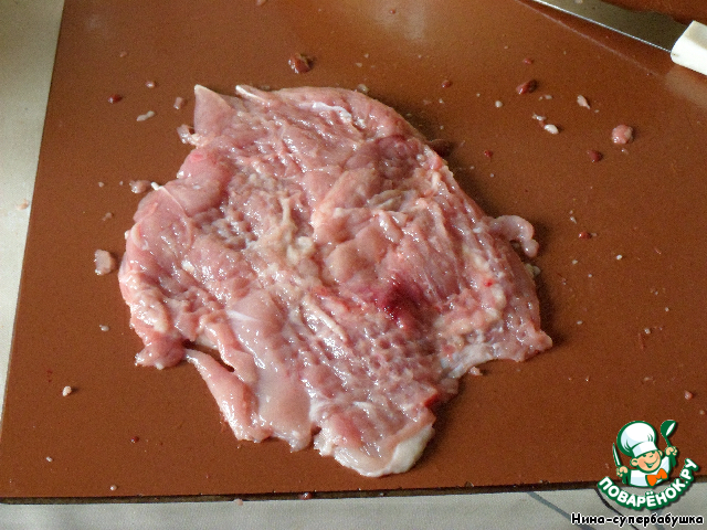 Получившийся пласт мяса накрыть полиэтиленовым пакетом и осторожно отбить. Так поступить со всеми окорочками.