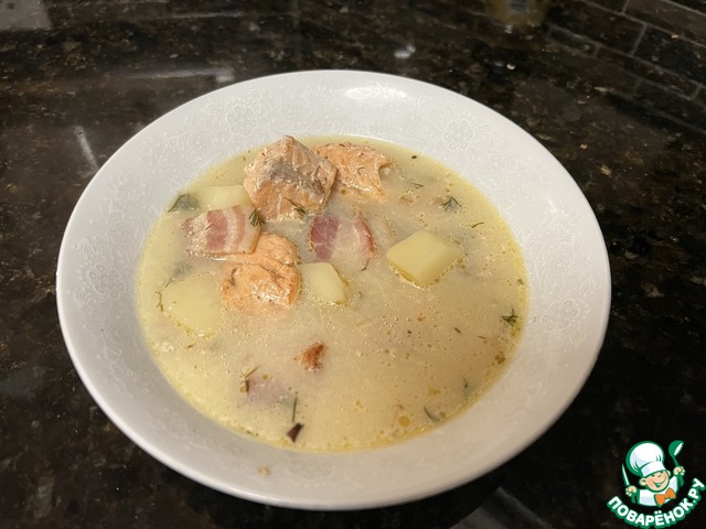 Потрясающе вкусный суп. Оказывается, американцы тоже кое-что могут в кулинарии))))))) Чаудер – общее название нескольких видов традиционного американского супа, приготовленного из моллюсков и бульона. Суп из морепродуктов является традиционным и популярным американским блюдом, известным с XVI века и возникшим в Новой Англии. Чаудер (сhowder) - классическая густая похлебка из моллюсков с подсоленным беконом и свиным хребтовым шпиком. Это очень вкусный и необычный суп. Чтобы чаудер был гуще, в него добавляют муку. Первоначально такие похлебки готовили из морепродуктов, но, в последнее время, чаудером называют любой густой наваристый суп с крупно нарезанными ингредиентами. Чаще всего в чаудер добавляют картофель, лук, сливки или молоко, моллюски и муку (для загущения жидкости). За время своего существования чаудер превратился из похлебки для бедных в любимое блюдо миллионов людей во всем мире. Рыбная похлебка появилась еще раньше чаудера из моллюсков. Чаудер из моллюсков готовили только в определенное время года (когда моллюски были в изобилии). Когда не было моллюсков, их заменяли рыбой. Рыбаки приносили дневной улов и готовили его в общем котле. Главный ингредиент рыбного чаудера - рыба или ракообразные. Рыбный чаудер - очень популярное в США блюдо. Рецепт из журнала "Школа гастронома".