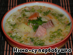 При подаче посыпать суп зеленью петрушки и укропа и зеленым луком.