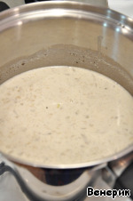 Влить 400 мл молока и один раз довести до кипения (только доводим до кипения молоко, не варим). Суп посолить, поперчить по вкусу.