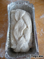 Положите сформированный хлеб в форму и присыпьте чуть-чуть мукой.