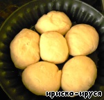 Сформованные шарики уложить, чередуя фарши, в смазанную маслом форму в один слой. Дать расстояться минут 20 в тепле, а затем выпекать при 230*С в течении 20 минут.