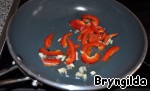 Обжарить слегка мелко нарезанный чеснок