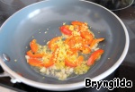 И лимонную цедру, немного обжарить.