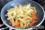 Выложить в сковороду фузилли и перемешать, немного подержать на огне - и готово!