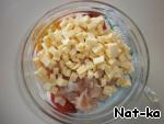 Также мелко режем твердый сыр и добавляем к филе.