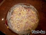 Дальше маринад вливаем в наше филе с сыром. Перемешиваем. Ставим в холодильник на 20 минут.