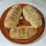 Если тесто немного липнет к рукам, добавляем еще немного муки и вымешиваем. Делим тесто на столько частей, сколько у вас сосисок. У меня это 5 частей. Каждую часть раскатываем вот в такую овальную форму (тесто не должно быть тонким!)