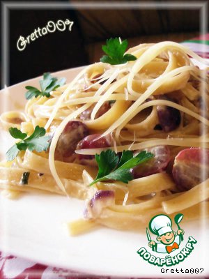 Рецепт "Паста с сырным соусом и красным виноградом":