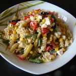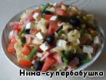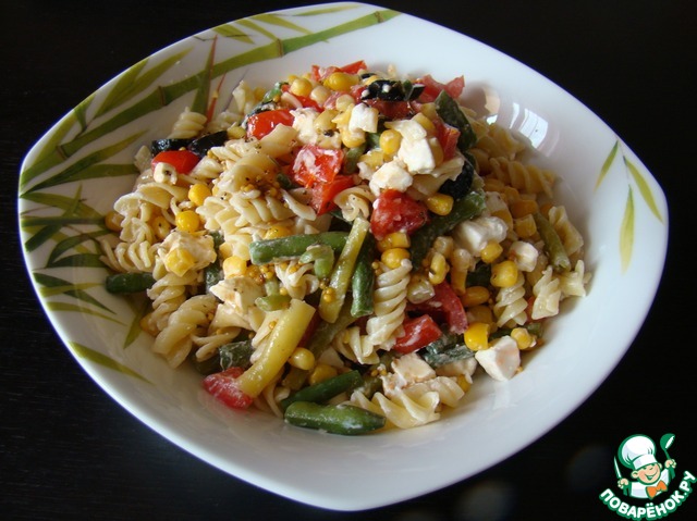 Много лет в моей коллекции лежат 2 или 3 рецепта салатов с макаронами, но я как-то не решалась их готовить. Не могла себе представить, как это: холодные макароны... с овощами... Но попробовала на ДР у дочки и просто обалдела. Это оказалась ТАКАЯ вкуснятина, не передать словами. И муж тоже был в восторге.