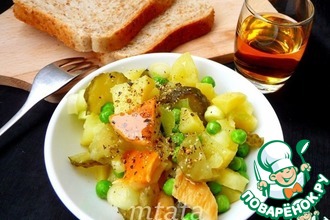 Ветчину, она здесь совершенно не обязательна, нарезать соломкой и бросить в общую кучу. Кстати, пробовали вариант и без ветчины - даже еще вкуснее. Добавить маслины.