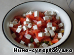 Помидор, нарезанный кубиками, предварительно удалив семена