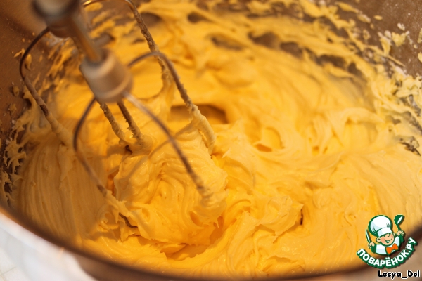 Отделить белки от желтков. Взбить желтки с маслом и пудрой.