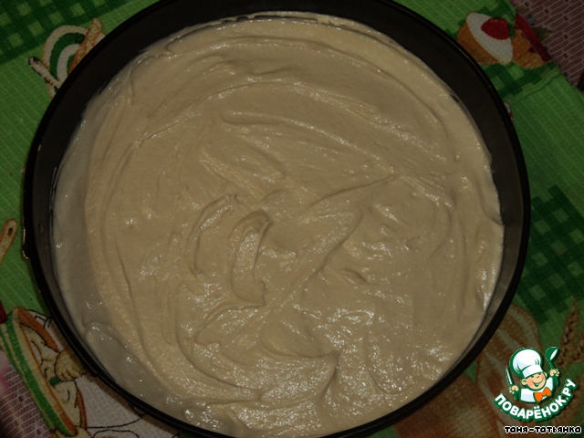 3.Готовое тесто выложить в смазанную форму и выпечь два коржа (можно один и потом разрезать на два) при 160-180 градусах 20-25 минут.