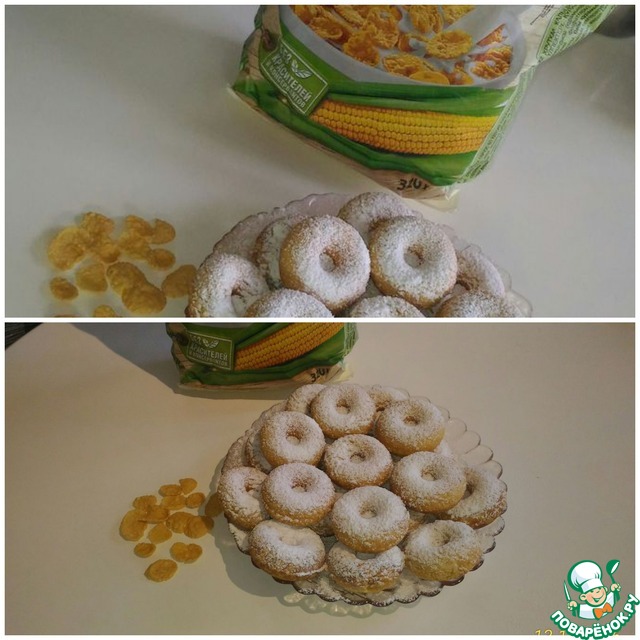 Кукурузные хлопья (без сахара) насыпать в пищевой кулек, размять скалкой.