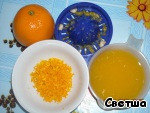 С одного апельсина натереть цедру и отжать сок. Второй апельсин нужен будет для украшения. |
