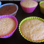Раскладываю её по 12-ти силиконовым формочкам. Уже проверено, что если теста в форме много, то при выпекании оно обязательно вытечет и зальет противень. Поэтому заполняю формочки примерно наполовину (я кладу не более 2 ст. л. в форму). И отправляю в уже разогретую примерно до 180 градусов духовку минут на 15-20 до сухой зубочистки. Важно не передержать, иначе донышко пригорит, а сверху капкейки покроются сахарной корочкой. Ориентируйтесь на свою духовку! У меня газовая, греет только снизу. Поэтому градусы и время - примерное.