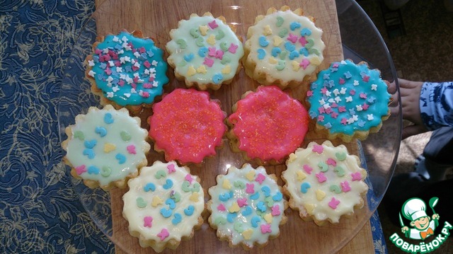 Для глазури в сахарную пудру добавляю 3 ч. л. лимонного сока, смотрю по густоте. Если нужно, добавляю еще сок. Обычно уходит 5 ч. л. сока.