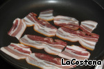 Бекон выложить на сковородку и обжарить с 2-х сторон.