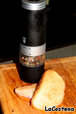 2 кусочка белого хлеба подсушить в тостере и посыпать смесью перцев.