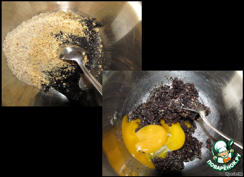 Маковую начинку смешиваем с молотыми орехами (у меня были лесные).