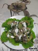 8.Готовое блюдо в горячем виде полить сметаной или легким майонезом и выложить на тарелку.