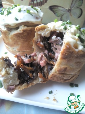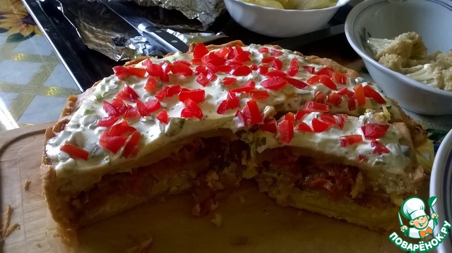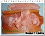 Дальше половина начинки (курица с овощами). Вот тут видно, что есть майонез.