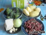 В кипящую воду положить брокколи на две минуты, достать шумовкой и измельчить в блендере. В этой же воде отварить картофель (сильно не разваривать), затем приготовить из него пюре. Овощной отвар оставить - он нам пригодится!
