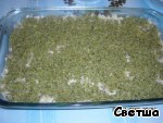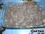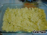Форму для запекания смазать сливочным маслом и 1 слой - это половина картофельного пюре.
