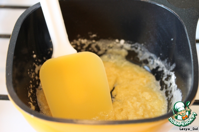 Готовим соус бешамель. Растопить сливочное масло в кастрюле. Добавить муку.