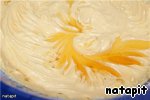 Растереть масло с пудрой добела и, взбивая миксером, ввести по одному желтки, добавить ликёр. -