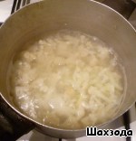 Цветную капусту залить кипятком и варить 5 мин. на медленном огне.