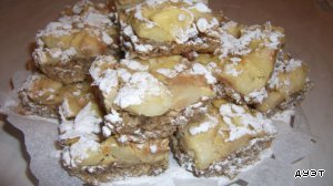 Ставим в разогретую до 180 гр. духовку на 25-30 мин. Когда испечётся, достаём и разрезаем на "штучки", пока пирог горячий. У меня получилось 20 шт. Как хорошо остынет, присыпаем слегка сахарной пудрой (по желанию).