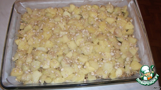 Выложить в застеленную пергаментом форму (у меня форма 20х30 см) и заняться начинкой.