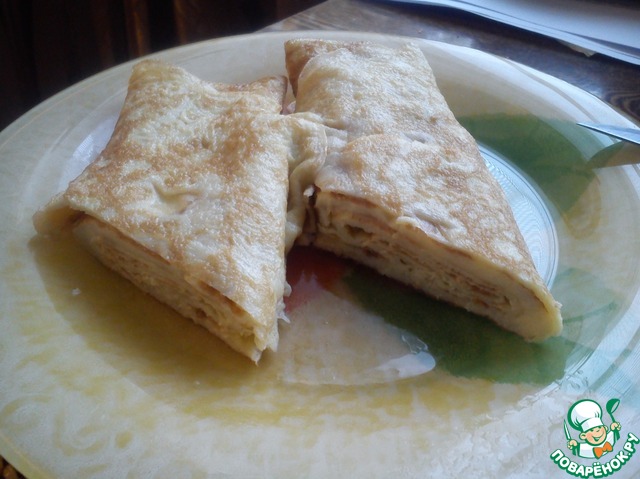 Ну и ошибка - схватил здоровую квадратную сковороду. В итоге и налил толсто и на одну закрутку хватило и пережарил (сверху яйцо схватилось)... Не добился результата как в ресторане и как у вас.