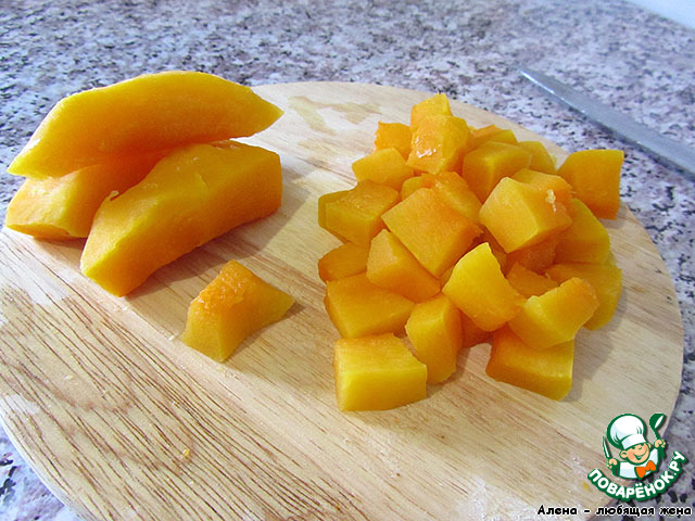 Тыкву очистить, убрать семена и нарезать некрупными кубиками