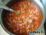 Влить вино и тушить 10 минут. Потом добавить мелко порубленные помидоры вместе с соком. Все тушим на небольшом огне 40 минут.