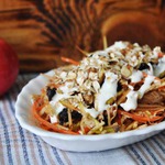 Это очень полезный и в то же время вкусный салат. Попробуйте, думаю, не пожалеете.