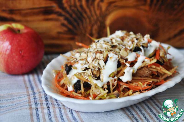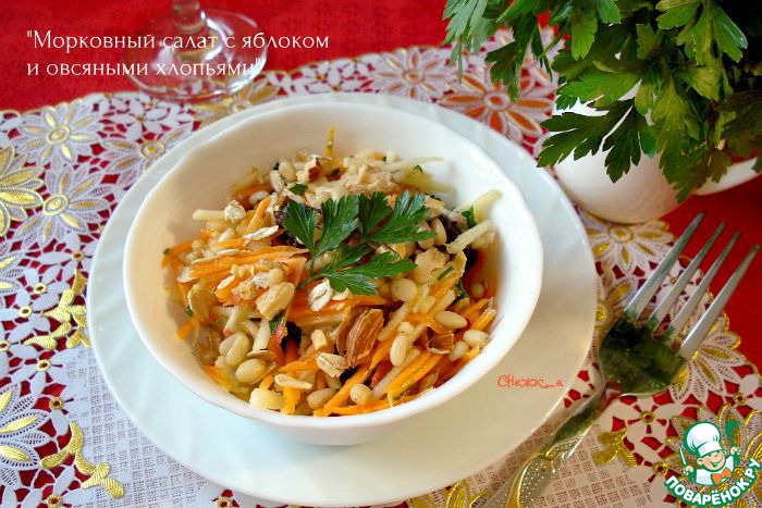 Рецепт «Морковный салат с яблоком и овсяными хлопьями»: