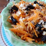 Чернослив нарезать кубиками, морковь и яблоко натереть соломкой.