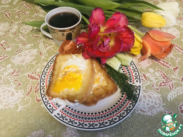 Переворачиваем, вот такая красота! Яичница в хлебе готова!