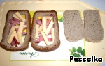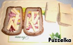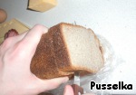 Итак, нарезаем 2 ломтика хлеба, ломтики довольно толстые, не меньше 1 см, вырезаем аккуратно мякиш в виде прямоугольника (они нам еще понадобятся).