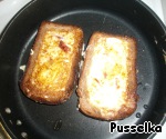 Теперь очередь мякиша. Делаем тосты, обжариваем с 2-х сторон, смазываем маслом и кладем сверху сыр.