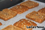 Готовые зерновые булочки разрезать, выложить на противень и прогревать в духовке около 5-7 минут, пока они не станут хрустящими.