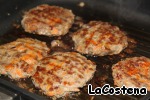 Котлеты выложить на горячую сковородку-гриль с оливковым маслом. Придавить прессом (у меня была тяжелая крышка).