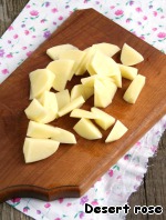 Картофель очистить от кожуры, промыть, обсушить и нарезать дольками.