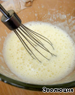 Заранее включаем духовку. Яйца и желток взбиваем со 150г сахара в плотную светлую массу.