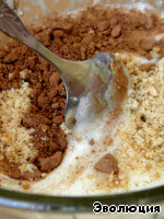 Теплое молоко вливаем к шоколадной смеси и перемешиваем венчиком.