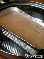 Полученную массу вливаем в форму с карамелью. Форму помещаем в глубокий противень или сковороду, наливаем горячую воду так, чтобы она доходила до 1/2 высоты формы с будущим десертом. -