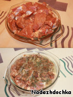 Мясо нарезать крупными кусочками, где-то 3*4 см. Замочить мясо в белом вине, розмарине и базилике на ночь. Я использовала сушеную нарезанную зелень. По возможности используйте свежую.